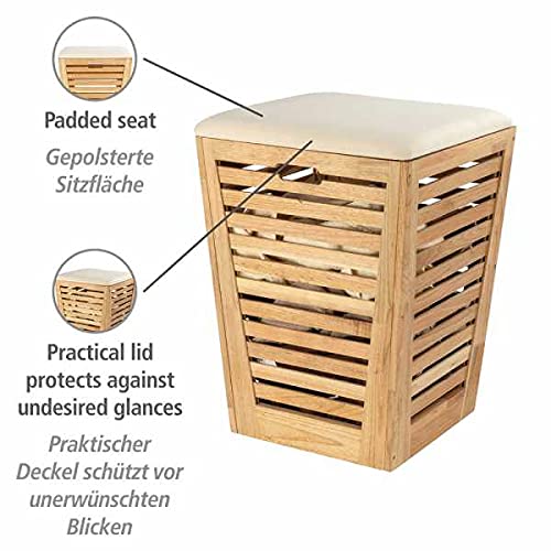 relaxdays Wäschekorb Wäschekorb mit Sitz Walnuss